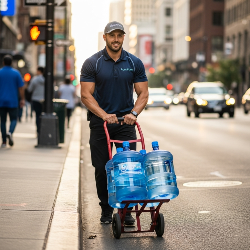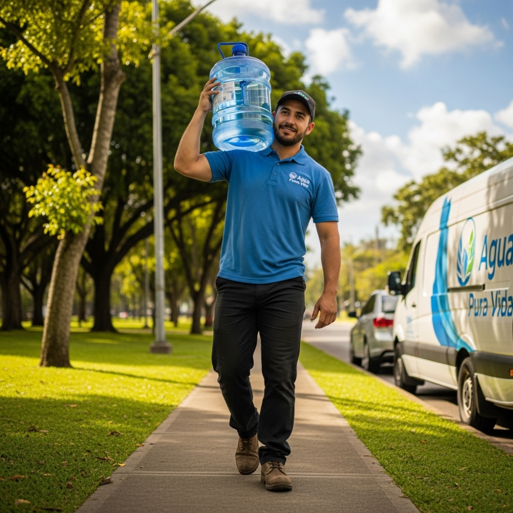 Entrega de agua purificada a domicilio, oficinas y establecimientos comerciales.