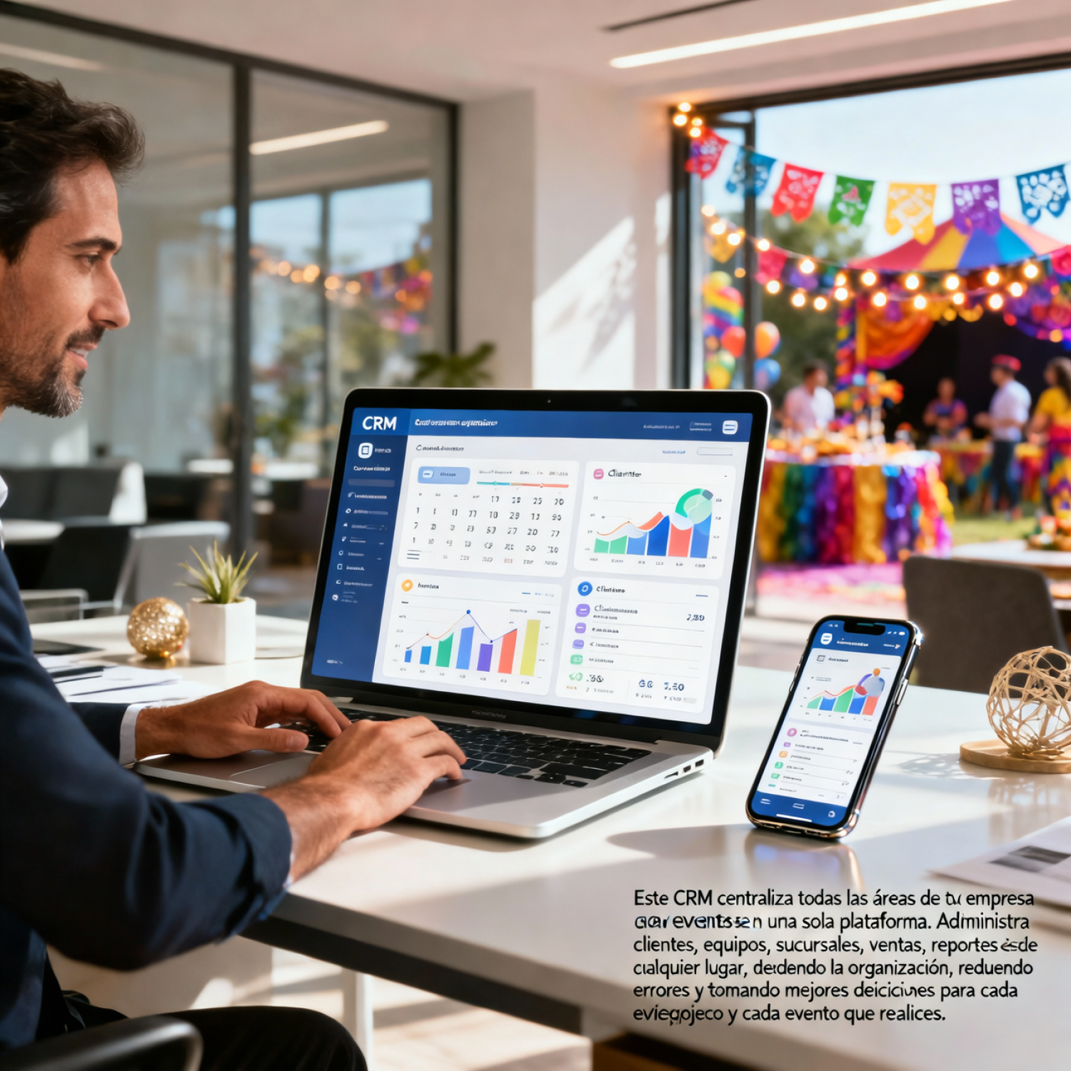 Somos una empresa dedicada a la organización profesional de eventos que utiliza tecnología CRM y una página web personalizada para brindar una experiencia eficiente, moderna y confiable a cada cliente, centralizando la comunicación, los pedidos y el seguimiento de cada servicio.